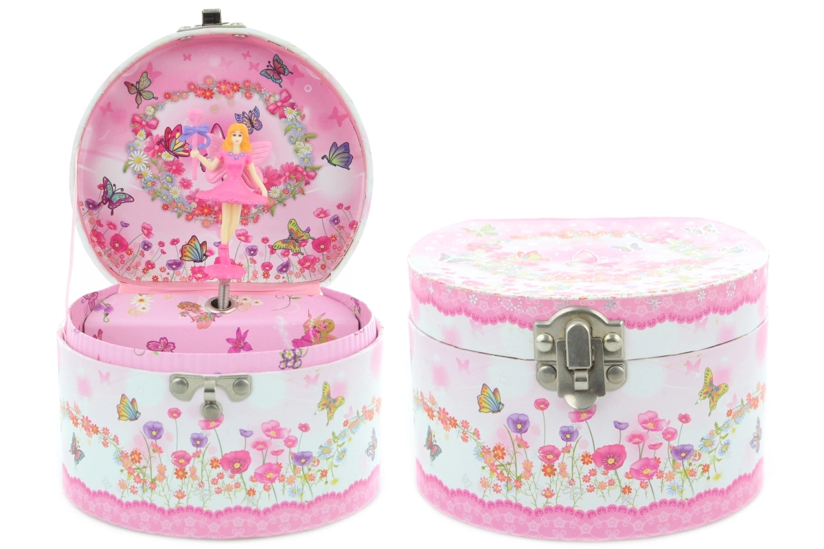 Az elbűvölő, zenélő tündéres ékszerdoboz tökéletes kiegészítő a gyerekszobába. A kulcs egyszerű felhúzása után a tündér az ékszerdoboz belsejében forogni kezd, és finom dallam szól, mesés hangulatot teremtve. Kompakt méretének köszönhetően elfér a polcon vagy az éjjeliszekrényen, miközben elegendő helyet kínál apró ékszereknek vagy titkos kincseknek.