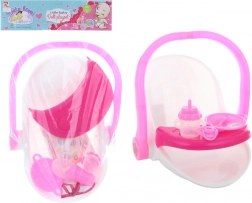 Fedezze fel a szórakoztató szettet a kis gondoskodók számára: műanyag baba hordozó praktikus kiegészítőkkel a mindennapi ápoláshoz. A gyerekek fejlesztik finommotorikájukat és fantáziájukat etetés, pelenkázás és kedvenc babájuk hordozása közben.