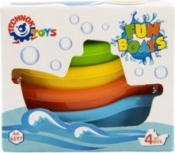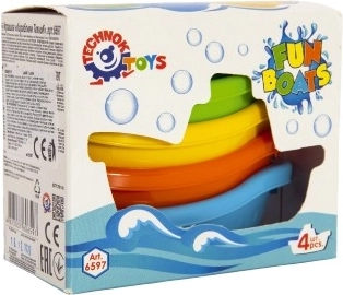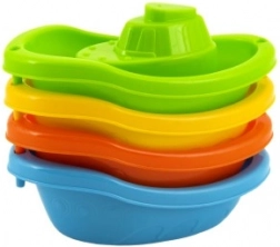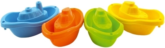 A készlet négy csónakot tartalmaz ragyogó színekben – kék, narancssárga, zöld és sárga –, amelyeket könnyen egymásra lehet rakni a praktikus tárolás érdekében. A csónakok formája és színei ösztönzik a gyerekek fantáziáját és kreativitását a vízi játék során.