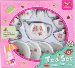 Elegáns porcelán teás készlet aranyos pillangókkal, amely örömet szerez minden kis házigazdának. Tartalmaz mindent a stílusos teázáshoz: 4 csészét csészealjjal, teáskannát, tejszíntartót és cukortartót. Ideális gyerek teapartikhoz és a szociális készségek fejlesztéséhez. 3 éves kortól ajánlott.