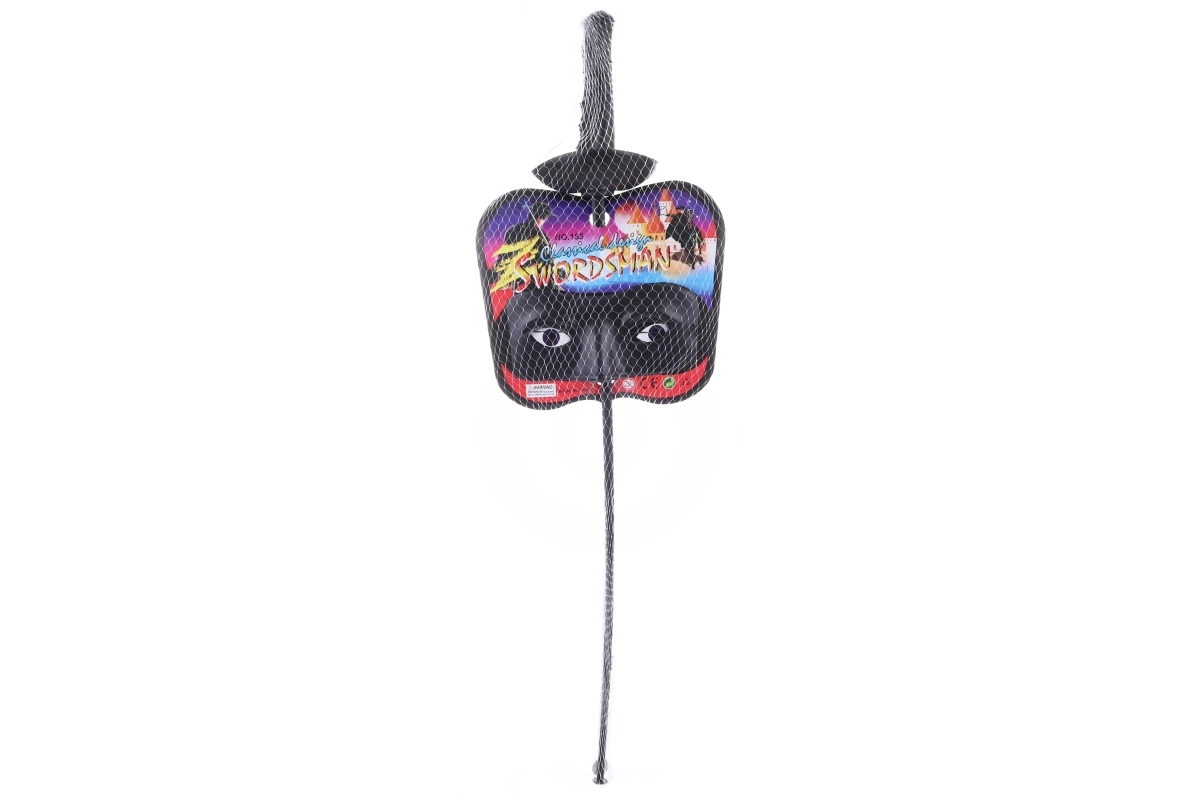 Műanyag kard kb. 60 cm hosszúságban, rugalmas gumis műanyag maszkkal kb. 17 cm szélességben. Hálós csomagolásban. A csomag mérete kb. 60 × 18,5 × 7,5 cm. Ajánlott életkor: 3+.
