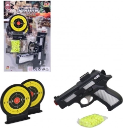 Szórakoztató gyerek golyós pisztoly két céltáblával, rengeteg akcióval és pontossági gyakorlással. A kompakt 15 cm-es méret ideális a kis gyerekkezekhez, a tartós műanyag anyag pedig könnyű kezelhetőséget biztosít. Remek választás 3 éves kortól, magyar nyelvű csomagolási dizájnnal.