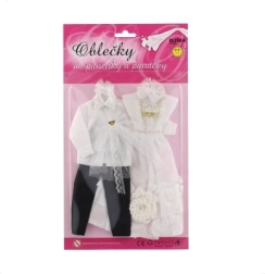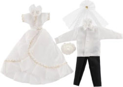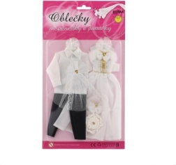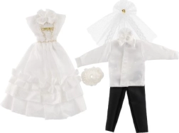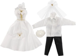 Készítse fel babáit egy mesebeli esküvőre ezzel a valósághű esküvői ruhaszettel, amely tartalmazza a menyasszonyi ruhát és a vőlegény öltönyét.