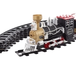 Vasútmodell füstölő mozdonnyal, hang- és fényeffektekkel, amely bővíti a gyermekek fantáziáját és órákig tartó szórakozást nyújt.