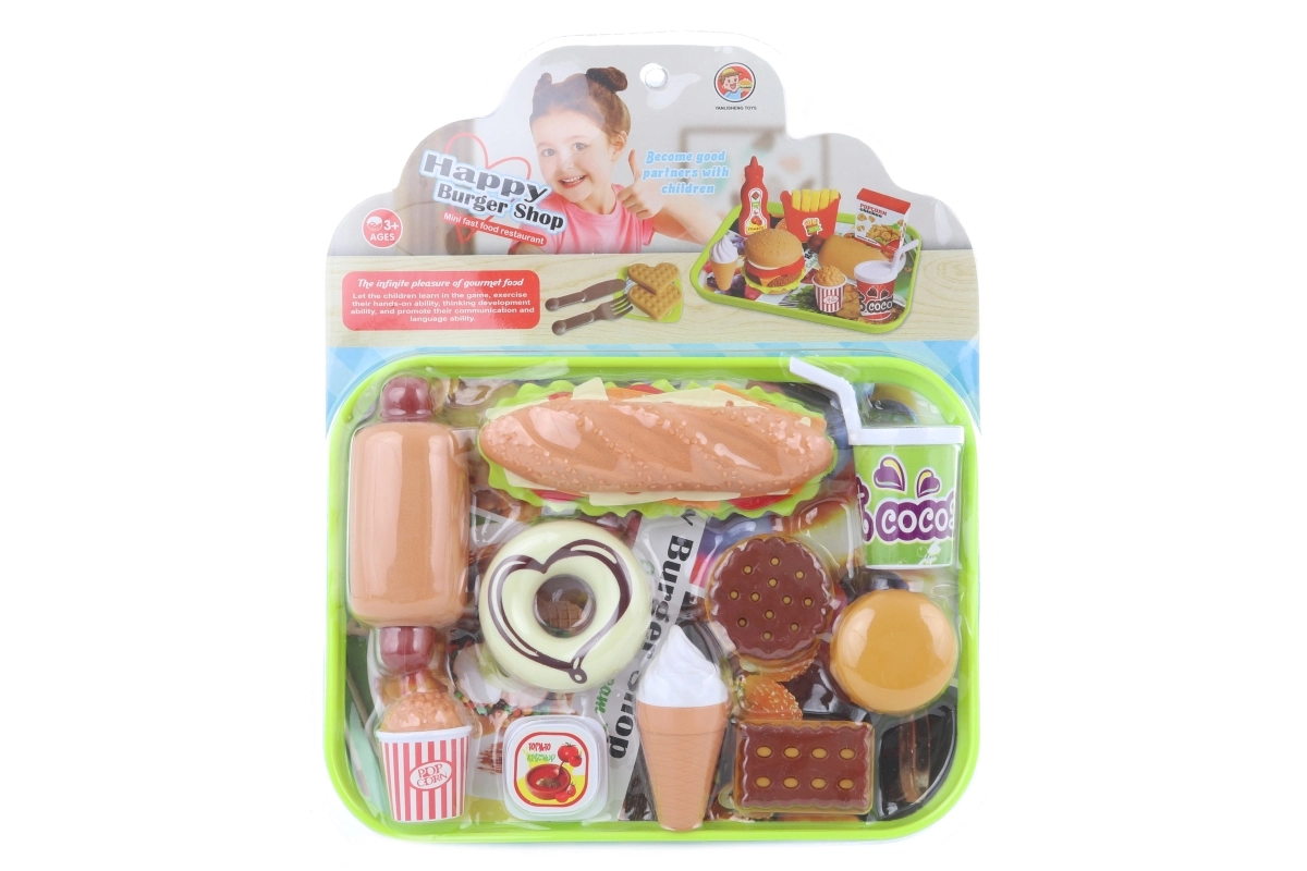 A szettben hotdog, fánk, kekszek, fagylalt, ital és további kiegészítők találhatók a valósághű főzős szerepjátékhoz. Remek ajándékötlet, és nagyszerű kiegészítője a gyerekkonyhának vagy a játékboltnak.