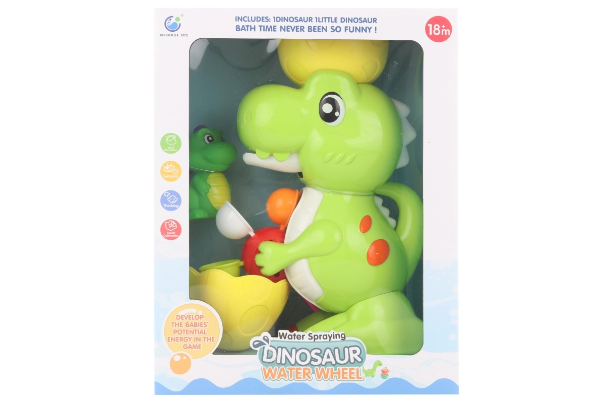 Tedd szórakoztatóvá a fürdést a gyerekeknek ezzel a vidám, dinoszaurusz alakú vízimalommal. A tapadókorongoknak köszönhetően könnyen rögzíthető a kád vagy a csempe falára, a víz pedig megforgatja a lapátokat a mókás vizes játékokhoz. Ideális 18 hónapos kortól, a dinoszaurusz mérete kb. 15 × 24 × 8 cm, és praktikus rögzítéssel rendelkezik sima felületekre.