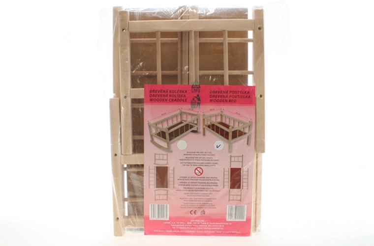 Ez a gyönyörű fa babaágy bizonyítvánnyal rendelkezik, biztosítva a biztonságot és a minőséget. Ideális gyerekjátékokhoz, amikor a lányok elhelyezhetik kedvenc babáikat pihenésre. Az ágy négy részből és egy alapból áll, amelyek könnyen összekapcsolhatók a mellékelt csavarok segítségével. Tervezésének és funkciójának köszönhetően nemcsak szórakozást nyújt, hanem fejleszti is a gyerekek képzelőerejét.