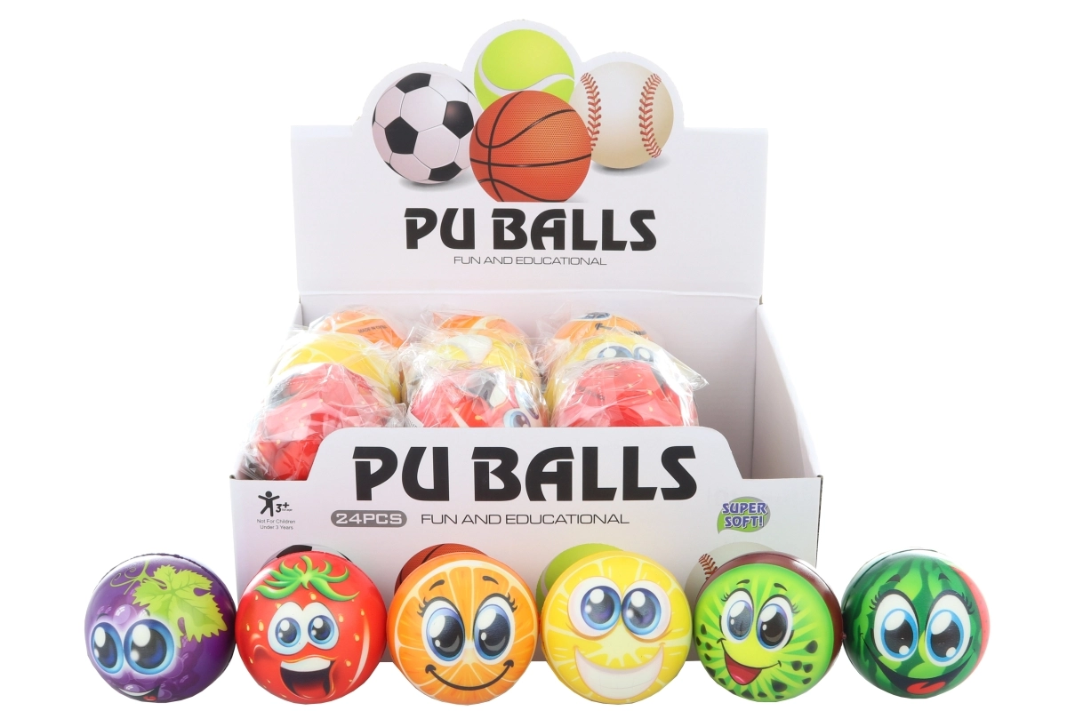 Aranyos és biztonságos, gyümölcsmintás labda, amely 3 éves kortól örömet okoz a gyerekeknek. Körülbelül 7 cm átmérőjének köszönhetően jól illik a kézbe, puha, könnyű, és beltéri és kültéri játékra egyaránt alkalmas.