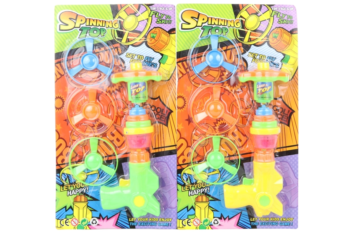 Elemes pisztoly repülő rotorokkal és színes pörgettyűvel
