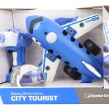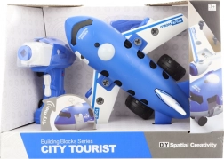 A kék-fehér színösszeállítású repülő tartós műanyagból készült, és valósághű részletekkel rendelkezik, mint az ablakok, futómű és szárnyak. A csomag tartalmaz csavarhúzót és gyerek fúrót is, amelyek a szereléshez és hajtómodulként egyaránt szolgálnak. Az összeállított modell mérete körülbelül 26 × 25 × 14 cm, pont ideális a gyerekkezekbe.