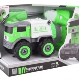 Ez a csavarozható kukásautó egy építőkészletet és egy RC modellt egyesít egy játékban. A gyerekek a mellékelt csavarhúzóval vagy fúróval maguk szerelik össze a járművet, a motor kivehető és az autóba helyezhető. Ezután az autó előre és hátra irányítható, fény- és valósághű hangeffektekkel.
