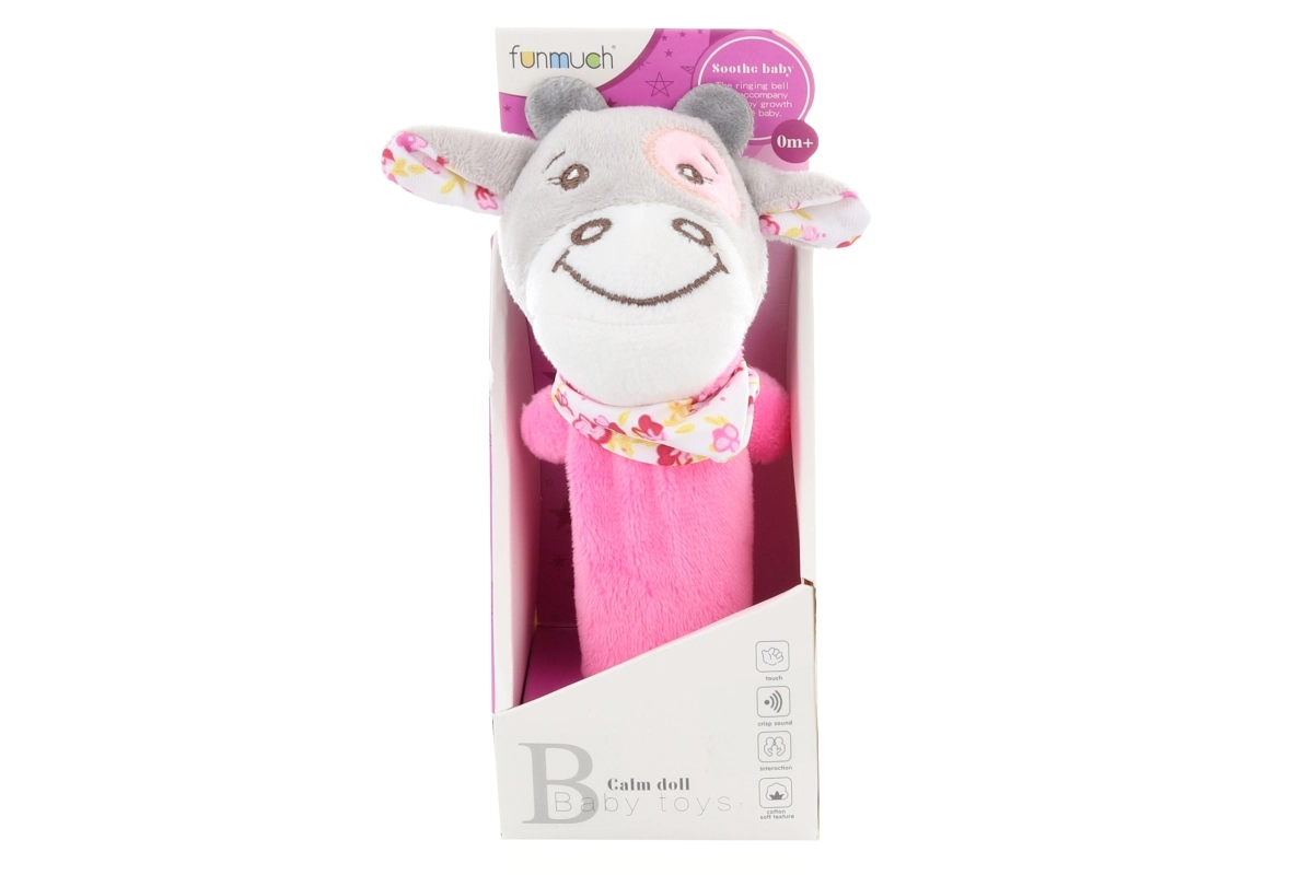 Aranyos plüss csörgő rózsaszín bociformában, amely minden babát felvidít. Finom sípoló hangot ad, kellemes plüss anyagból készült, és kényelmesen megfogható a kis kezek számára. Ideális az érzékszervek stimulálására, a motorika fejlesztésére és szórakozáshoz otthon és útközben.