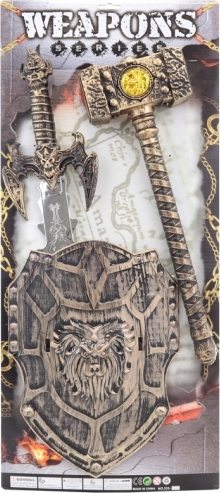 Kalandos lovagi készlet kis hősöknek, amely tartalmaz egy kardot, pajzsot és buzogányt. Ideális a biztonságos lovagi játékhoz és a fantázia fejlesztéséhez. Könnyű, könnyen megfogható, és 3 éves kortól ajánlott.