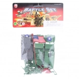 Csomag tartalma: kb. 5 cm magas katonák készlete és 3 db kb. 10 cm hosszú katonai jármű. Ajánlott 3 éves kortól.