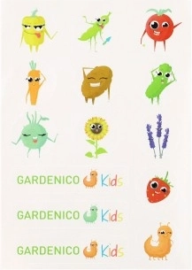 A készlet tartalmaz Gardenico Kids matricákat, amelyek támogatják a kreativitást és segítik a gyerekeket a növények megismerésében játékos formában.