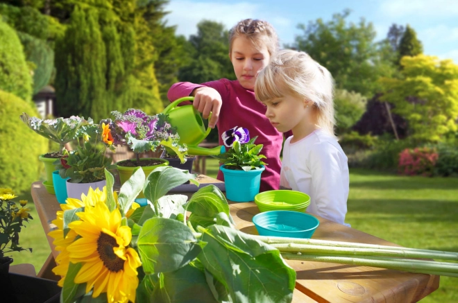 Ezzel a szettel a gyerekek megtanulhatják a kertészkedés alapjait, miközben szórakoznak saját növényeik termesztésével színes virágtartókban.