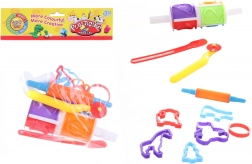 Univerzális gyurmakészlet kis alkotóknak, amely tartalmaz mindent a vidám alkotáshoz gyurmából vagy modellező anyagból. A csomagban található 6 kiszúró, spatula, rádlivágó, nyújtóhenger és mintázó henger kiszúróval. Ideális a kreativitás, a finommotorika és a játékos formaismeret fejlesztésére. Ajánlott 3 éves kortól.
