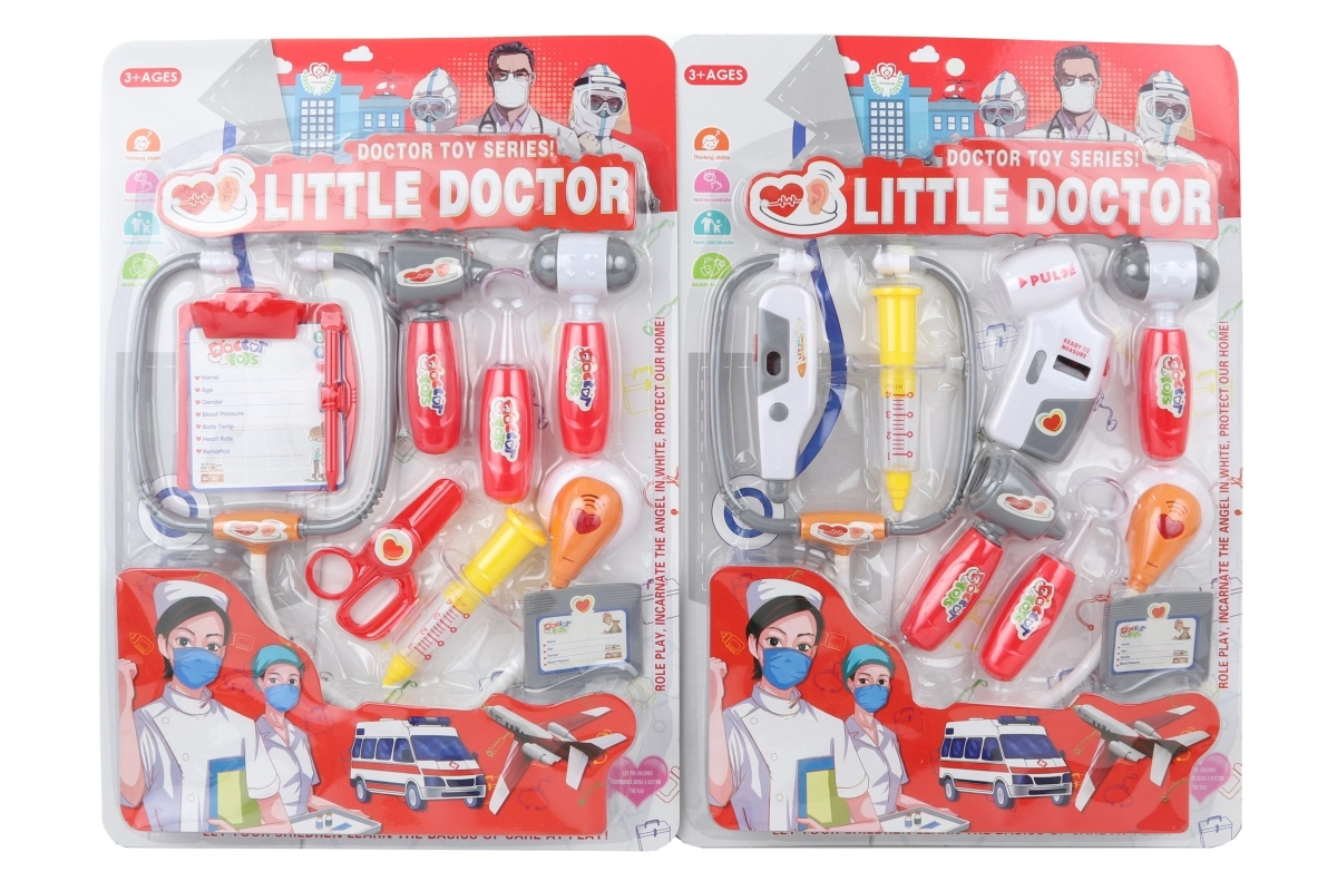 Szórakoztató és élethű orvosi készlet kis doktoroknak, amely mindent tartalmaz a rendelős játékhoz: sztetoszkóp, fecskendő, vérnyomásmérő, hőmérő, reflexkalapács és további kiegészítők. Ideális a képzelet, a kommunikáció és a finommotorika fejlesztéséhez. 3 éves kortól ajánlott.