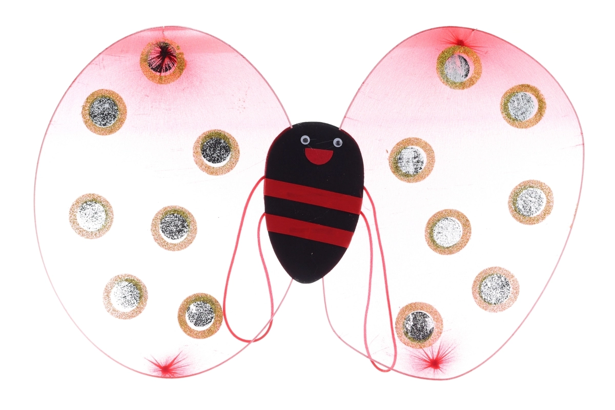 Könnyű, áttetsző szárnyak csillámos pöttyökkel és elasztikus pántokkal az egyszerű és biztonságos viselésért még hosszabb játék közben is.