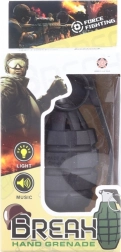 Ez a valósághűen kidolgozott, kb. 11 cm hosszú műanyag gránát ideális katonás vagy titkos küldetéses játékokhoz. Egyetlen megnyomással autentikus hanghatások aktiválhatók, amelyek serkentik a fantáziát és fokozzák a szórakozást.
