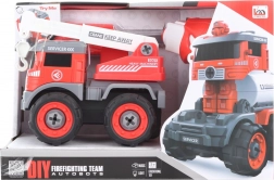Fedezze fel az okos játékot, amely fejleszti a finommotorikát és a fantáziát: a csavarozható tűzoltóautót a gyerekek könnyedén összeszerelik a mellékelt csavarhúzóval vagy fúrógéppel. A fúrógépből a motort ki lehet venni, az autóba helyezni, és máris egy előre és hátra haladó távirányítós jármű lesz belőle. A fény- és hangeffekteknek köszönhetően a játék még élethűbb.