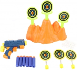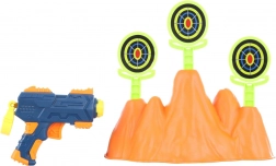 Szórakoztató gyermekszett a pontosság gyakorlásához: felhúzható pisztoly célpontokkal és hablövedékekkel a biztonságos játékért. Remek a kéz–szem koordináció, a reflexek és a pontos célzás fejlesztésére otthon és a szabadban. Ideális ajándék 6 éves kortól.