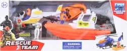 Fedezd fel a mentés izgalmas világát a mentőkészletünkkel, amely tartalmaz motorcsónakot, helikoptert, felfújható hajót és 4 mentős figurát.