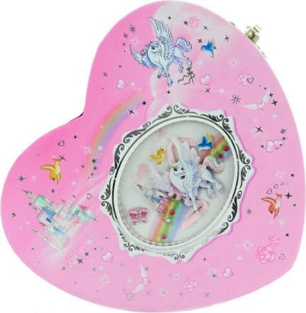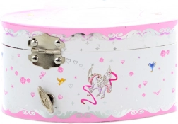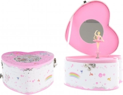 Ez a bájos, szív alakú zenedobozos ékszertartó tökéletes hely a gyűrűk, fülbevalók és apró kincsek számára. A kulcs felhúzása után dallam szólal meg, és a kis balerina elegánsan forog a tükör előtt. A rózsaszín árnyalatok és a finom motívumok dizájnja egyaránt elbűvöli a gyerekeket és a felnőtteket.