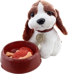 A kb. 18 cm-es, aranyos kutyus ideális ölelgetéshez és szerepjátékhoz is. A gyerekek empátiát és felelősségvállalást tanulnak, miközben gondoskodnak kis kedvencükről.
