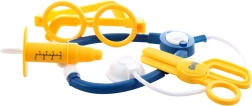 A fonendoszkóp, a fecskendő, a szemüveg és az olló könnyű műanyagból készültek, lekerekített élekkel. Fejlesztik a fantáziát, és megismertetik a gyerekeket az alapvető eszközök funkcióival.