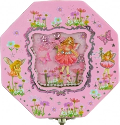 Ez a bájos, rózsaszín, mesemotívumos zenélő ékszerdoboz tökéletes hely gyűrűk, fülbevalók és más apróságok tárolására. A kulcs elfordítása után a balerina kecsesen forog a tükör előtt, és a doboz gyengéd dallamot játszik.