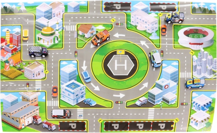 Fedezd fel a közlekedési kalandok világát egy készlettel, amely ötvözi a tartós fém kisautókat és a praktikus játékszőnyeget. A gyerekek fejleszthetik fantáziájukat, finommotorikájukat és koordinációjukat, miközben a saját kis városukban játszanak.