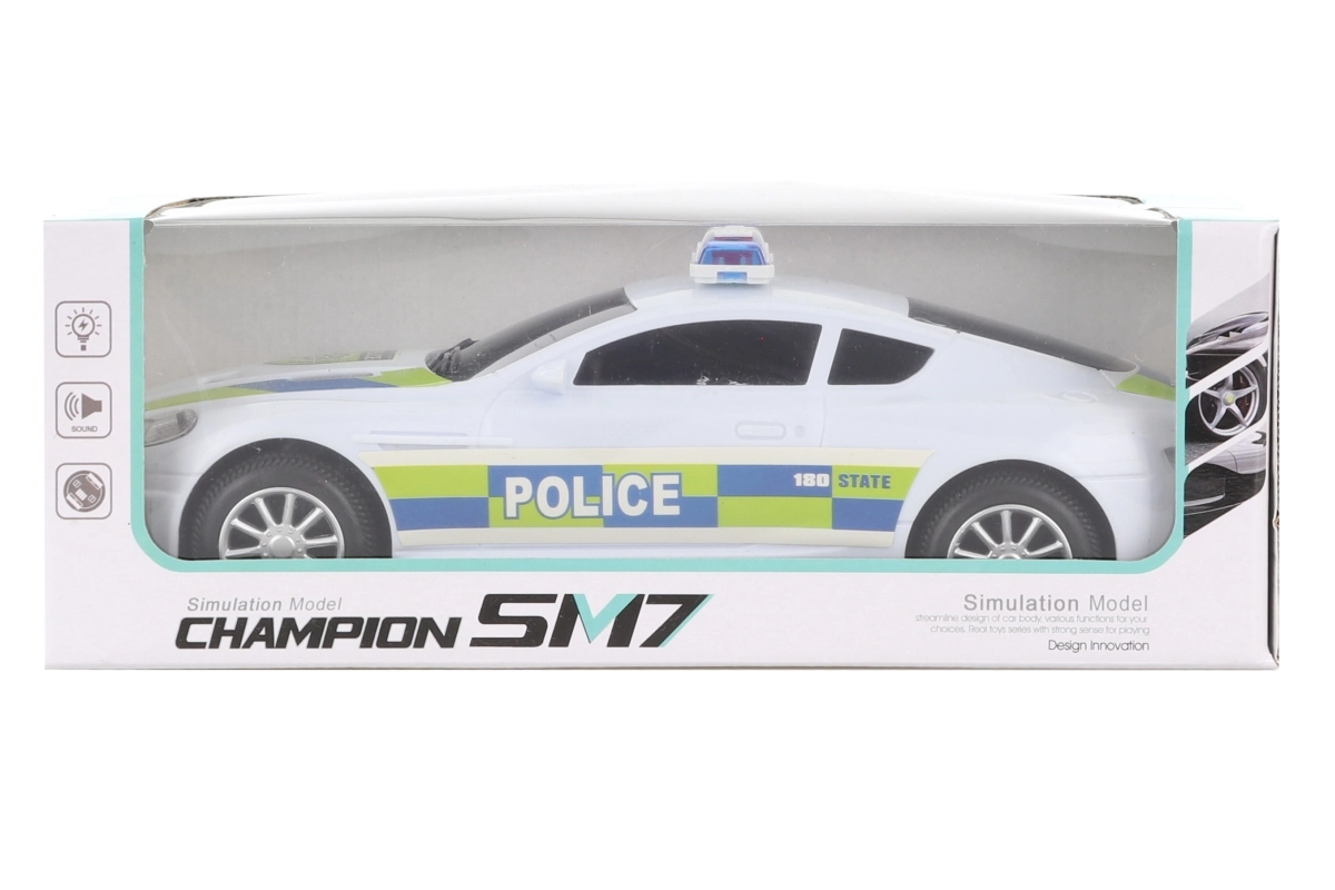 Szórakoztató, elemes műanyag rendőrautó, amely örömet okoz minden kis sofőrnek. Bekapcsolás után magától megy, ütközéskor irányt vált, világít és valósághű hangokat ad ki. Ideális játék 3 éves kortól, amely fejleszti a fantáziát és az akciódús játékot.