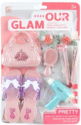 A bájos gyermek szépségszett minden kis parádésnak örömet szerez. Tartalmaz cipőcskéket, táskát, hajszárítót, hajvasalót, fésűt és további kiegészítőket a kreatív játékhoz. Ideális 3 éves kortól, segíti a fantázia és a finommotorika fejlődését.