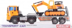 Műanyag teherautó kotrógéppel, mérete kb. 28 × 10,5 × 8 cm. A csomag mérete kb. 32 × 13 × 9 cm. Korosztály: 3+