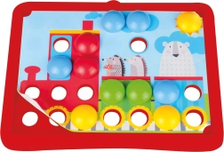 A masszív műanyag kivitel tartósságot és hosszú élettartamot biztosít. A gyerekek újra és újra behelyezhetik a csapokat, saját mintákat alkothatnak, így fejlesztve a kéz–szem koordinációt és a koncentrációt. A praktikus csomagolás otthonra és útra egyaránt alkalmas.