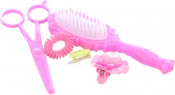 A csomag része egy bőséges tartozékszett: fésű, gumik, spirálok és csatok, melyek lehetővé teszik a szórakoztató és biztonságos játékot. A terméket kis kezekhez tervezték, és támogatja a fantázia és a kézügyesség fejlődését.