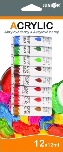 Univerzális akrilfesték-készlet kreatív alkotáshoz különféle felületekre. 12 élénk árnyalatot tartalmaz 12 ml-es kiszerelésben, amelyek vízzel hígíthatók, és használhatók papírra, kartonra és vászonra. Alkalmas kerámia, üveg és kő dekorálására is. Ideális kezdőknek és 3 éves kortól gyermekeknek.