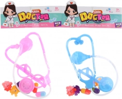 Szórakoztató gyermek orvosi készlet praktikus tasakban, amely örömet szerez a 3 éves kortól ajánlott kis doktoroknak. Tartalma: sztetoszkóp, szemüveg, 3 pirula és 3 baktériummodell a rendelős játékhoz és a fantázia fejlesztéséhez.