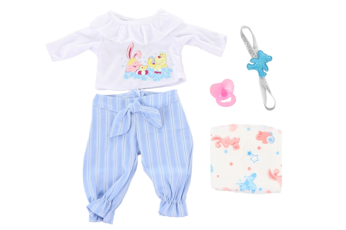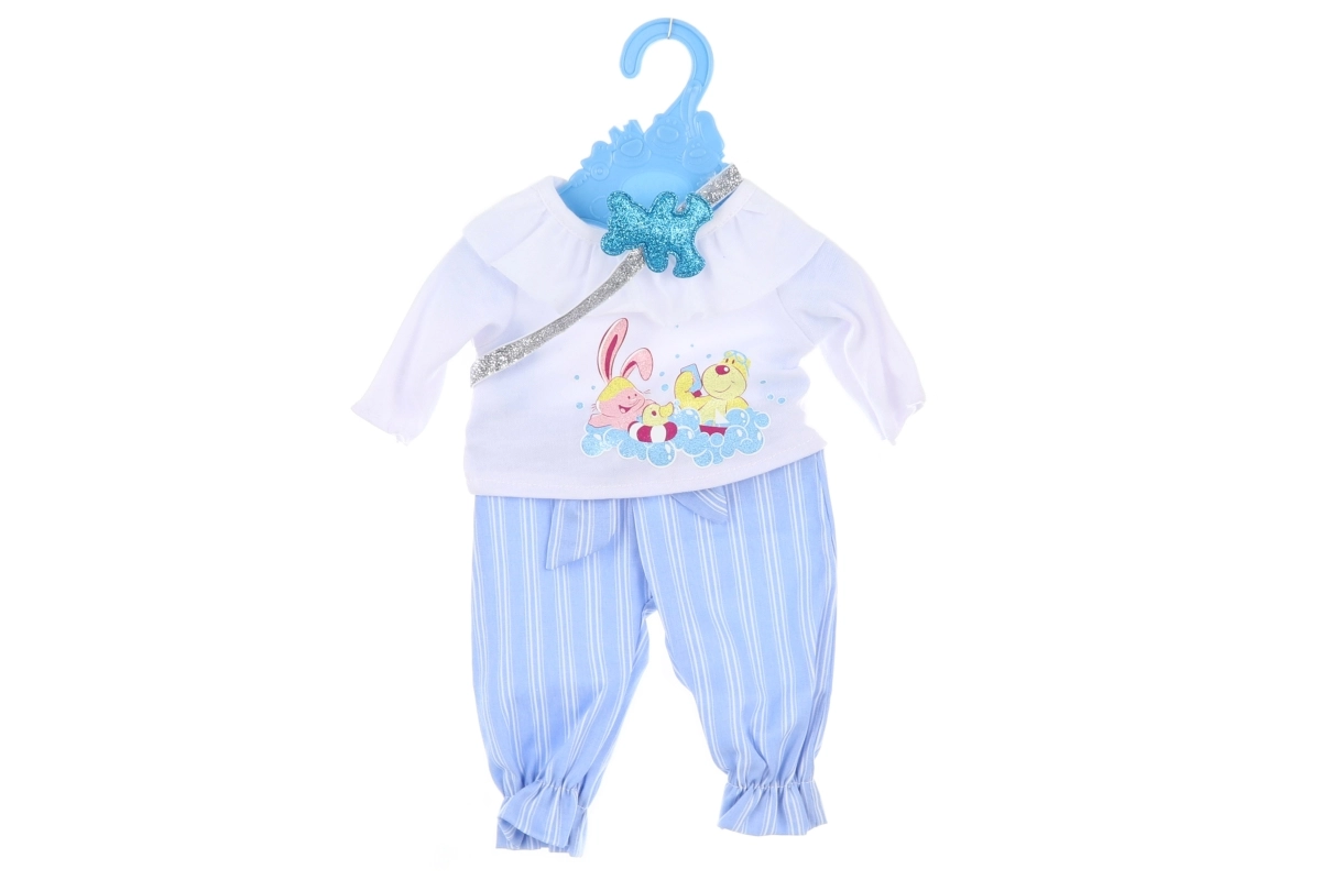Ajándékozz új öltözéket a babának, és adj a gyerekeknek végtelen játéklehetőséget. A ruházat körülbelül 45 cm magas babákhoz készült, és illik a legtöbb ebben a méretben elterjedt babatípushoz. Átgondolt szabásának köszönhetően az öltöztetés egyszerű még a kisebb gyerekek számára is.