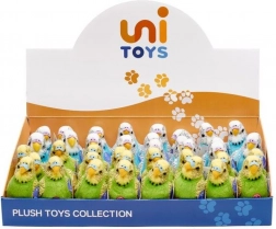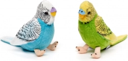 Plüss hullámos papagáj, kb. 14 × 7 cm méretben. Kor: 0+