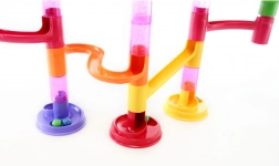 A golyópálya építőkészlet sokféle csövet, kanyart és lejtőt kínál, amelyeket könnyedén egymásba pattinthatsz, így egyedi pályákat hozhatsz létre. A 45 elemnek köszönhetően alacsony és többszintes összeállításokat is készíthetsz, és minden alkalommal más-más versenyt élhetsz át.