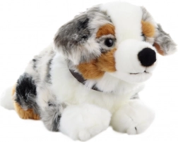 Hűséges színezés, kifejező szemek és finom szőrtextúra adnak a plüss ausztrál juhászkutyának hiteles és bájos megjelenést.