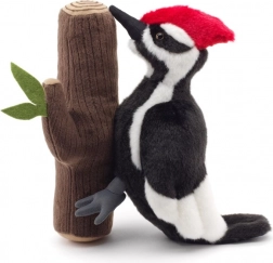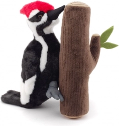 Ez a plüss harkály jellegzetes piros bóbitájával és kontrasztos fekete-fehér tollazatával egy puha „fához” levelekkel van rögzítve, így különösen élethű hatást kelt. A puha plüssnek köszönhetően tökéletes ölelgetéshez, a gyerekszoba díszítéséhez és kreatív játékhoz.