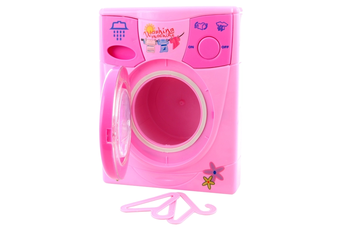 A csomag része 2 vállfa is, így a gyerekek a teljes mosást és teregetést eljátszhatják. A működéshez 2× AA elem szükséges (nem tartozék), amelyeknek köszönhetően a mosógép hanggal és mozgással kel életre. Tartós műanyag anyag a mindennapos játékhoz.