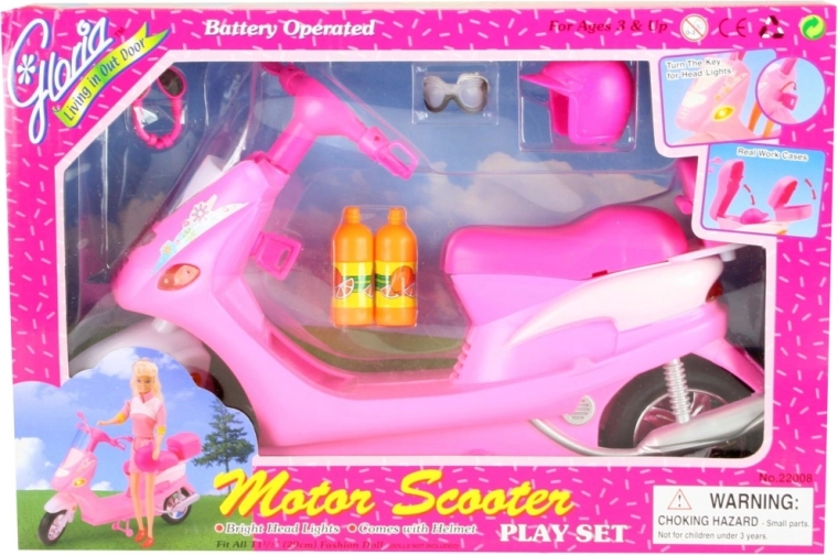 A robogó első fényszórói felgyulladnak, amikor megfordítja a kulcsot, ami növeli hitelességét. Készüljön fel kalandokra a babákkal egy hátsó tartónak köszönhetően, amely nyitható fedéllel rendelkezik apróságok tárolására. A csomag tartalmaz továbbá stílusos szemüveget, sisakot és két műanyag palackot, hogy a babák mindig készen álljanak az útra.