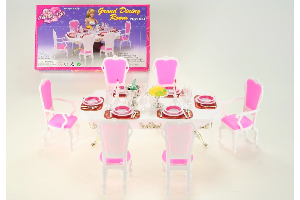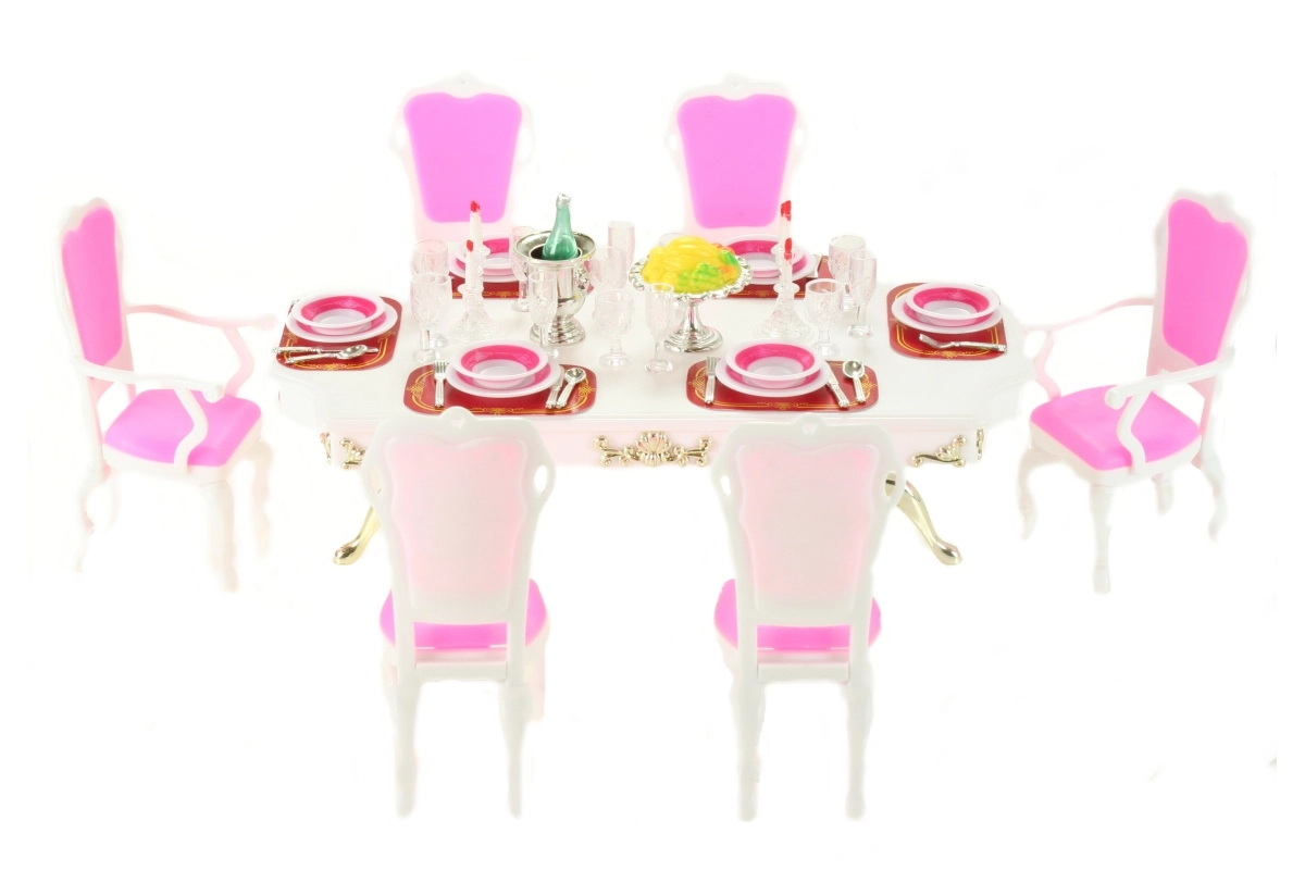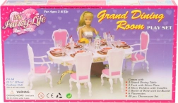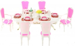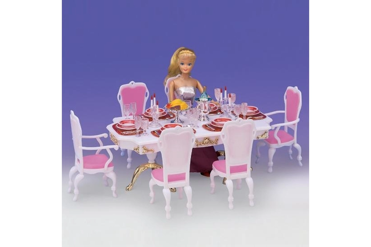 Készíts tökéletes vacsorát a babáknak a teljes Glorie készlettel. A nagy asztal és a hat szék bőséges helyet biztosít a vendégeknek, míg a részletes kiegészítők valósághű hangulatot adnak a játéknak. A készletet úgy tervezték, hogy a gyerekek könnyen használhassák, és fejlessze a fantáziát, a kommunikációt és a finommotorikát.