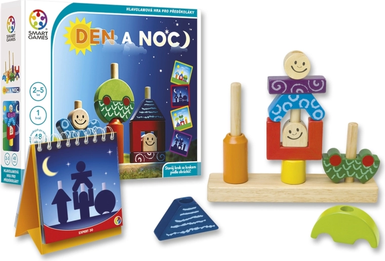 A Nappal és éjjel egy okosan megtervezett, egyszemélyes logikai játék, amely a legelső egyszerű kirakásoktól a bonyolultabb térbeli feladatokig kíséri a gyerekeket. A nappali kártyákon minden részlet látható, míg az éjszakai kártyák csak körvonalakat mutatnak – így a gyermek fejleszti képzelőerejét, figyelmét és finommotorikáját.