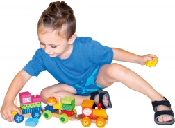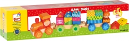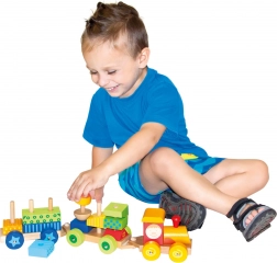 Ez a multifunkcionális fa vonat nemcsak húzós játék, hanem építőkészlet is, amely lehetővé teszi a gyermekek kreativitásának fejlesztését. A vonat három alvázat és 18 különböző kockát tartalmaz, amelyeket a fantázia szerint lehet összeilleszteni.