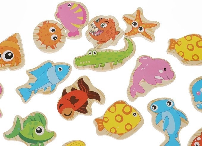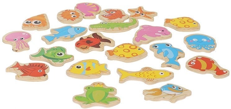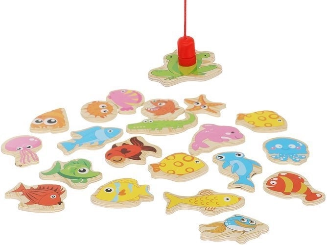 Fedezze fel a mágneses horgász játékot, amely fejleszti a gyermeke képességeit és szórakoztató élményt nyújt. 25 darabos készlet, fakomponensekkel egy akváriumszerű dobozban.